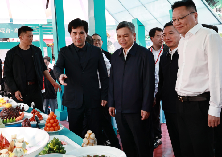 下午2时半许,活动现场人头攒动、美食飘香。刘捷参观考察大运河美食文化走廊展区、“浙江印象”十一设区市展区、网红精品餐饮和外贸优品展区,听取各地餐饮文化和特色美食介绍,与参展商户、市民交流交谈。
